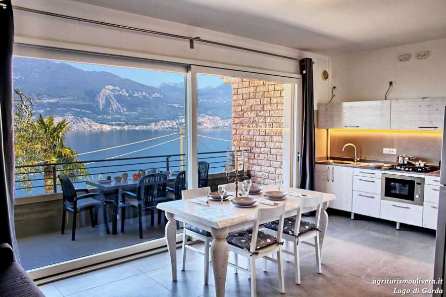 Zur Verfügung unserer Gäste stehen verschiedene Wohnungen mit einem Wohnzimmer mit Küche mit großen Fenstern mit Blick auf den See, ein oder zwei Schlafzimmer mit Doppelbett, ein Badezimmer mit Dusche und ein geräumiger Balkon oder Terrasse.